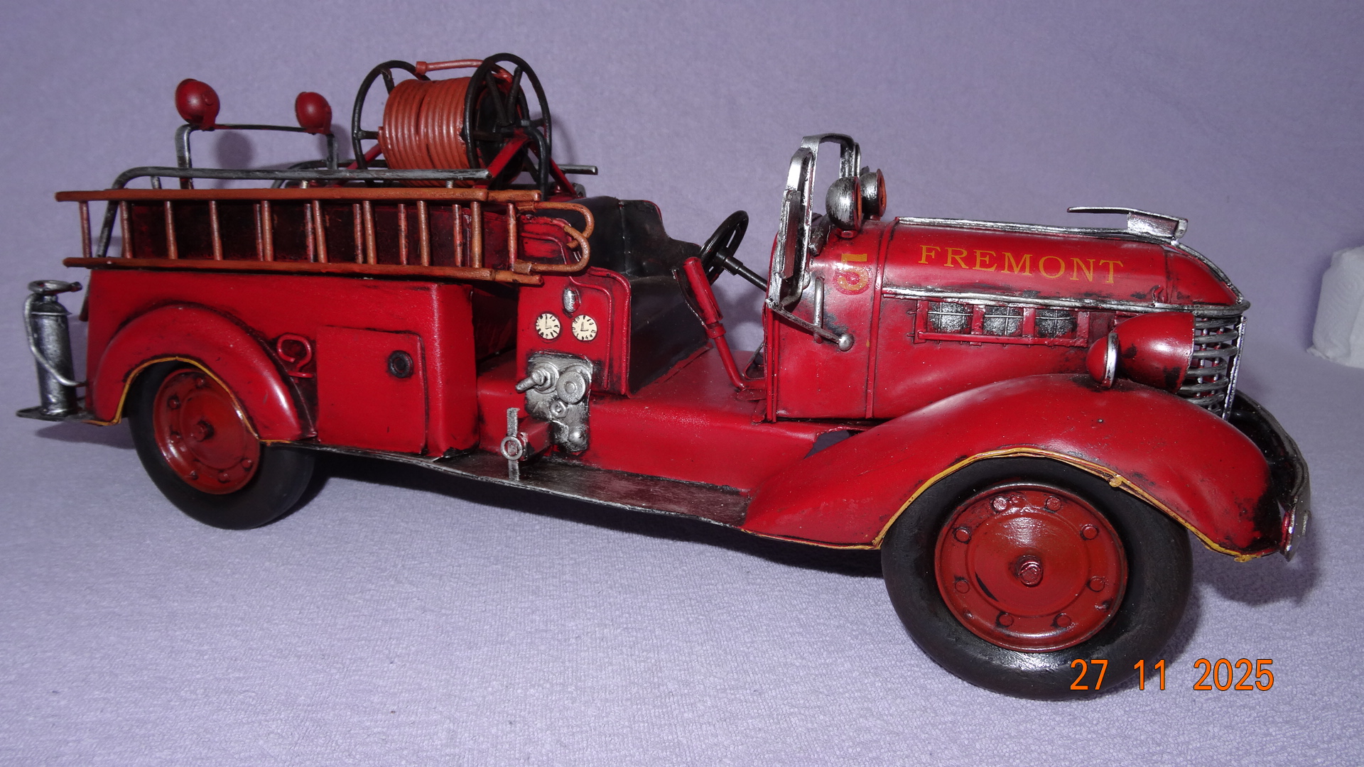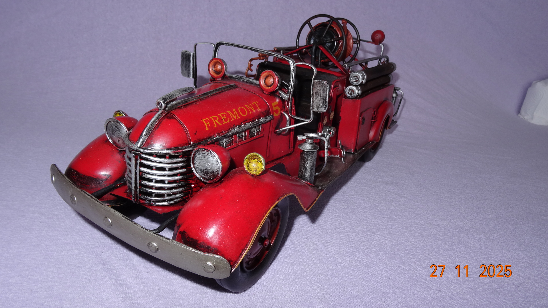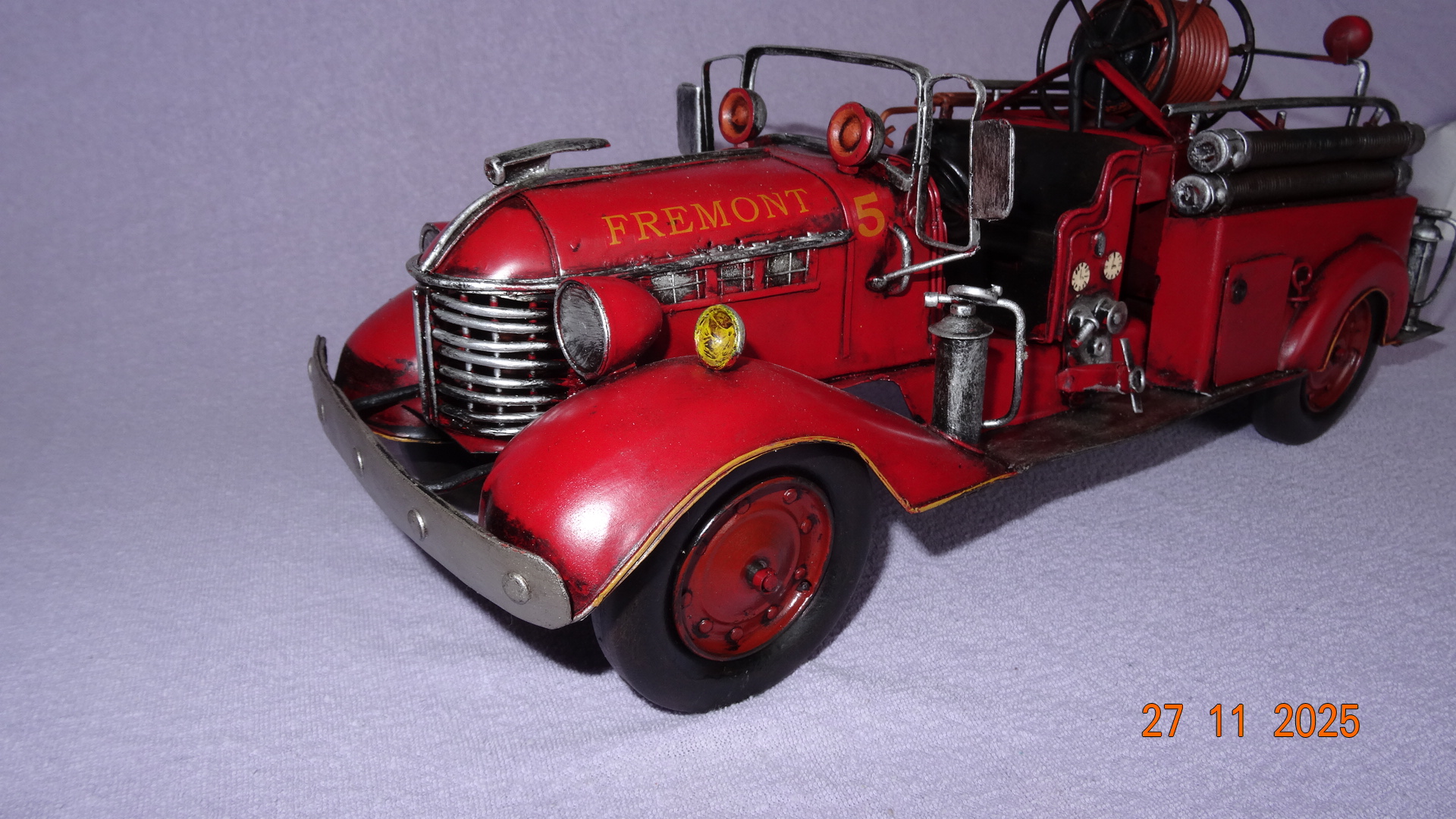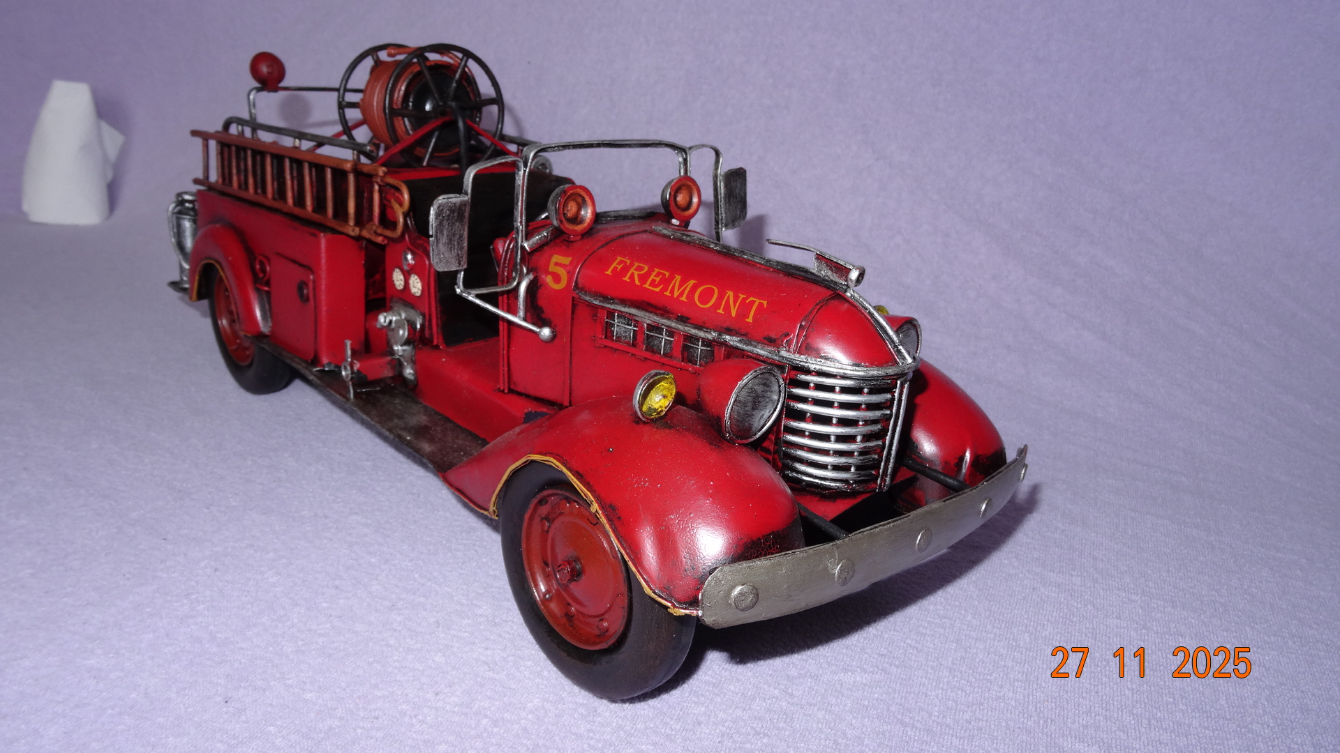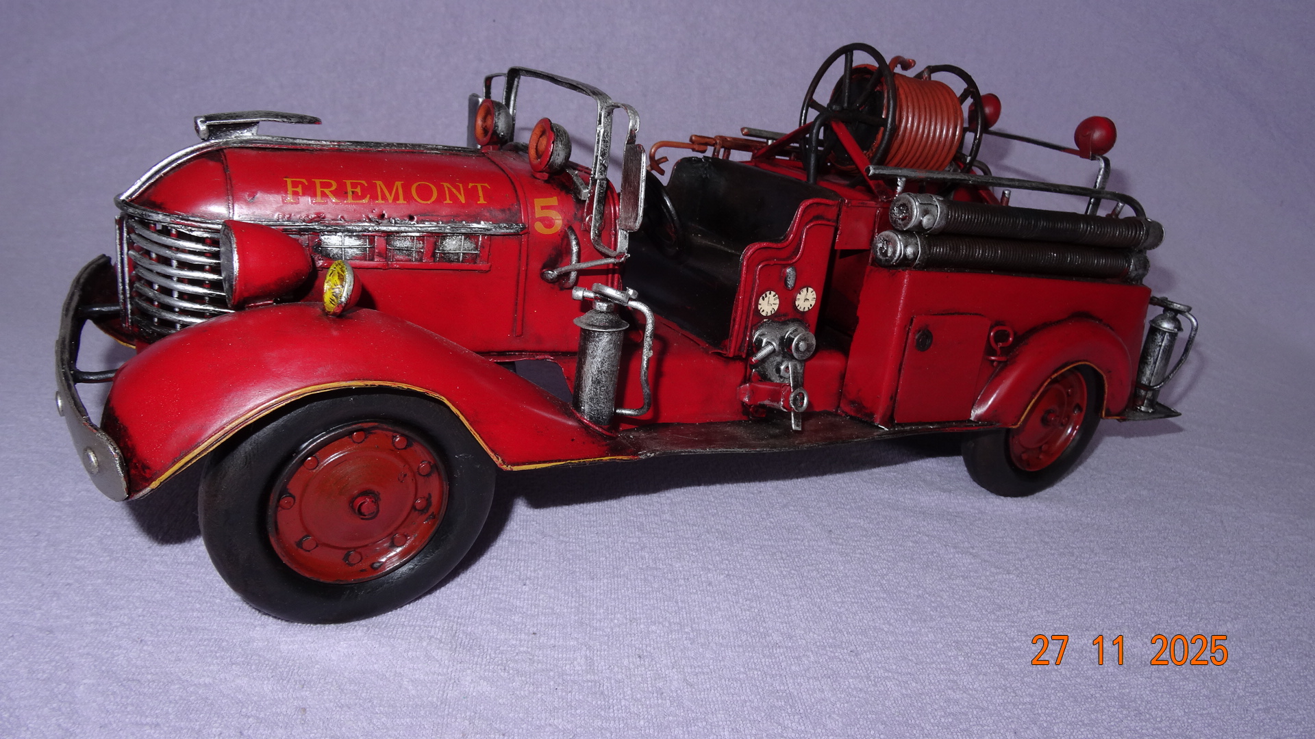 Hasičský zásahový vůz FREMONT Chicago, ročník 1932. Provedení v barvě tmavě červené. Rozměry D=42 x Š=9,5 x V=17,5 cm. Váha 1480 g. Výroba: ruční práce, lakovaný plech.