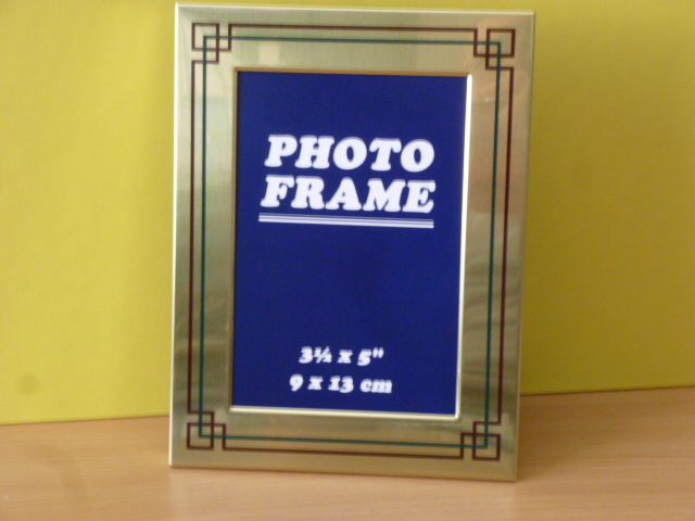 - portrétový rámeček stolní 9 x 13 cm, z leštěného eloxovaného hliníku, zlatý s potiskem